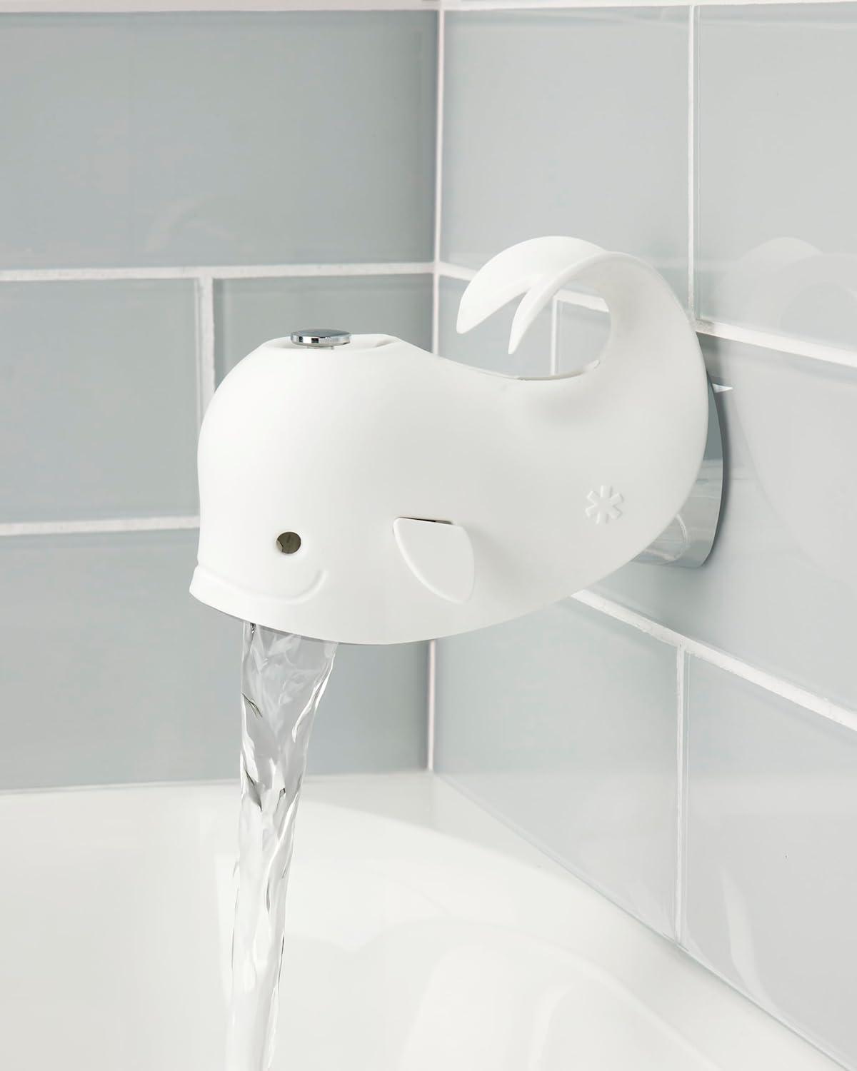 Skip Hop Baby Bath Spout Cover, Bathtub Faucet Cover with Soft Rubbery Material, Dishwasher-Safe, Easy-to-Adjust Straps and Tail Hook for Hanging, Fits Most Tub Spouts, MOBY, White(Moby White)