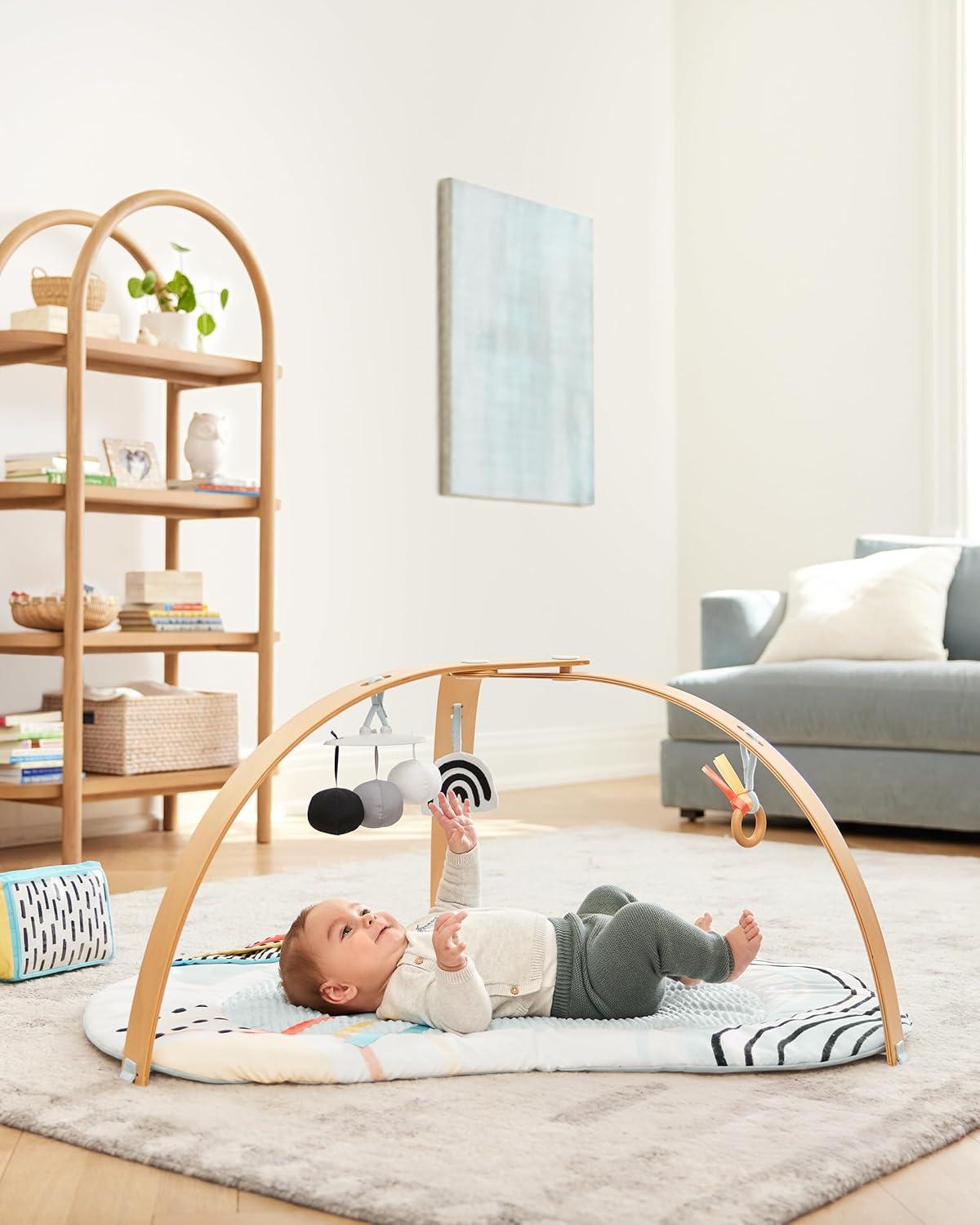 Designed in collaboration with experts in Montessori education, our Discoverosity Play Gym balances soothing simplicity and sensory engagement to encourage baby’s natural curiosity and development. Crafted with sustainably-sourced wooden arches and a comfy playmat, the four nature-inspired developmental toys include contrasting patterns, crinkle sounds, a baby mirror and more to encourage self-directed activity and exploration. From vision and concentration to fine motor skills, the included parent guide explains the play gym’s milestone-driven activities so parents, caregivers and baby can explore, learn and develop together.