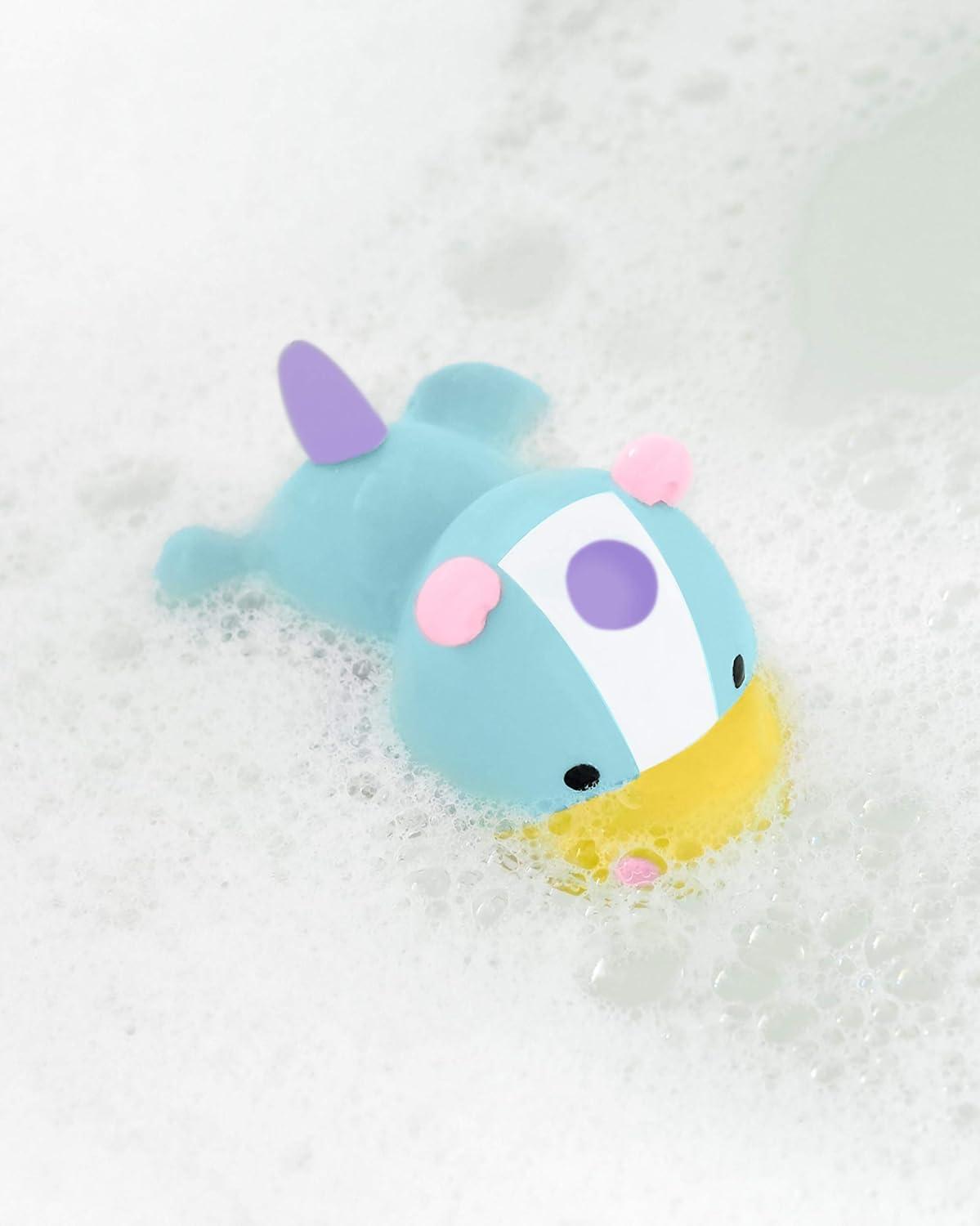 Brighten-up tub time with a cute ZOO friend! Featuring water-activated multicolor lights, this soft and squeezable bath toy is sure to make a splash with your little one!