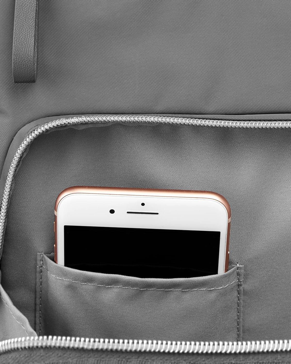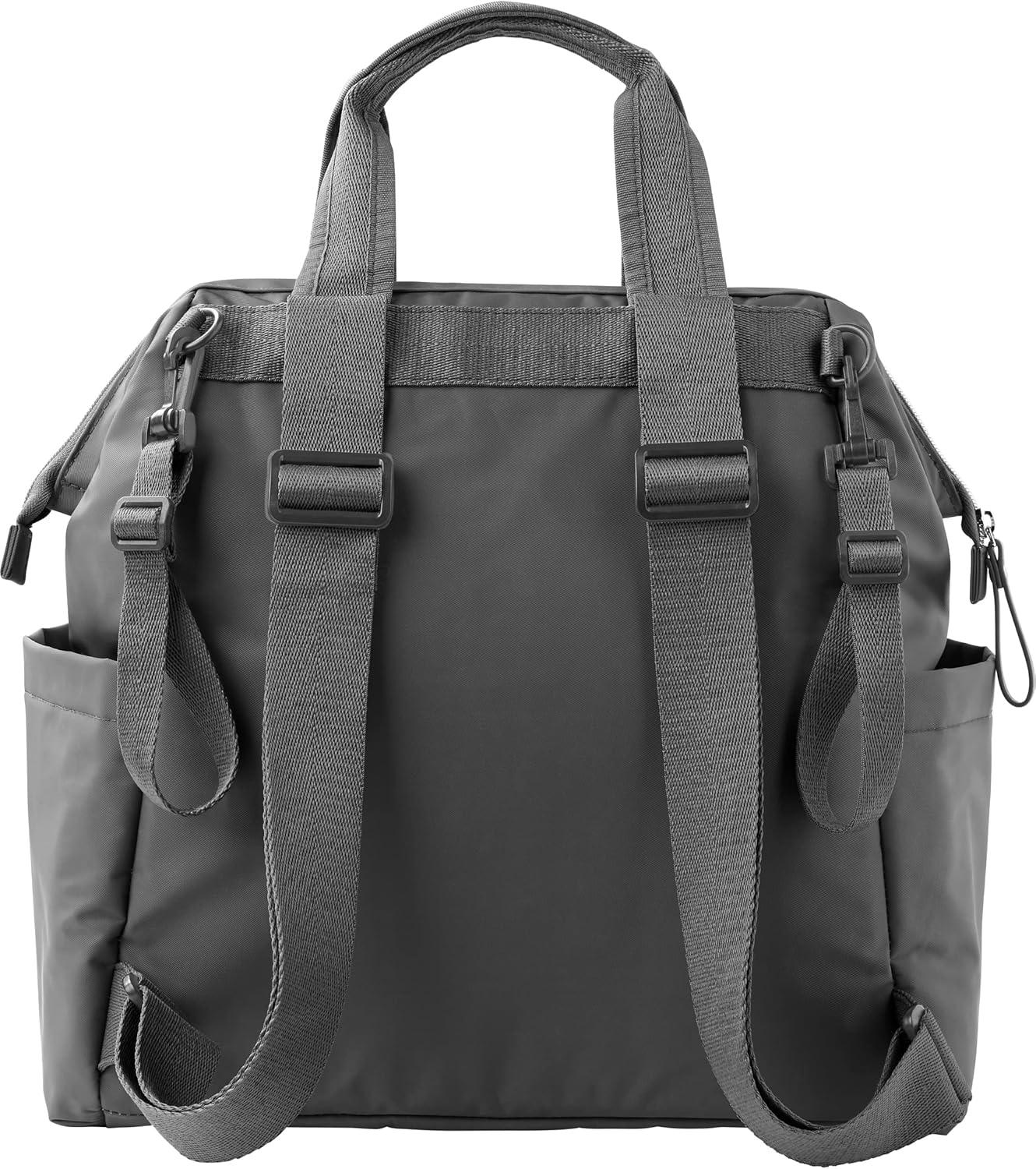 Easy-grab double top handles and adjustable backpack straps make this user-friendly look the ultimate in hands-free ease