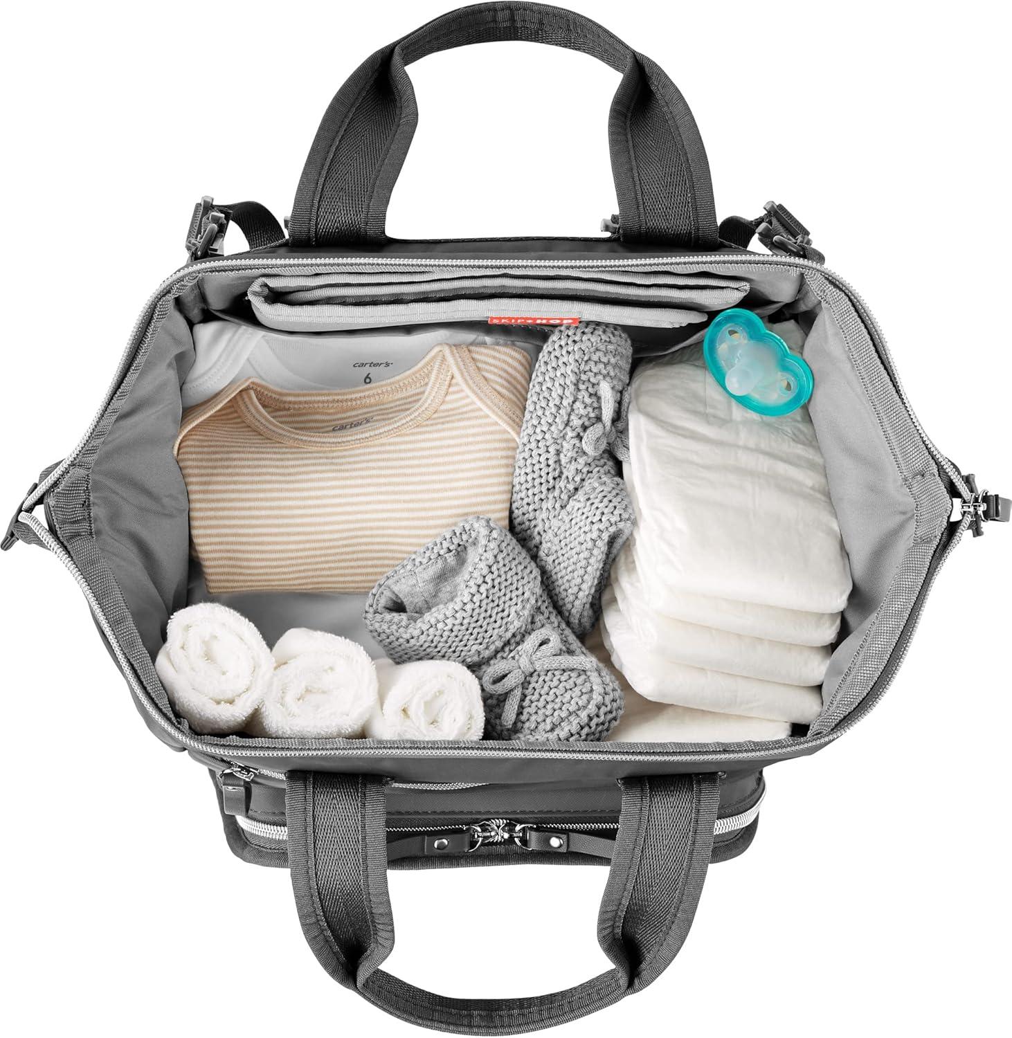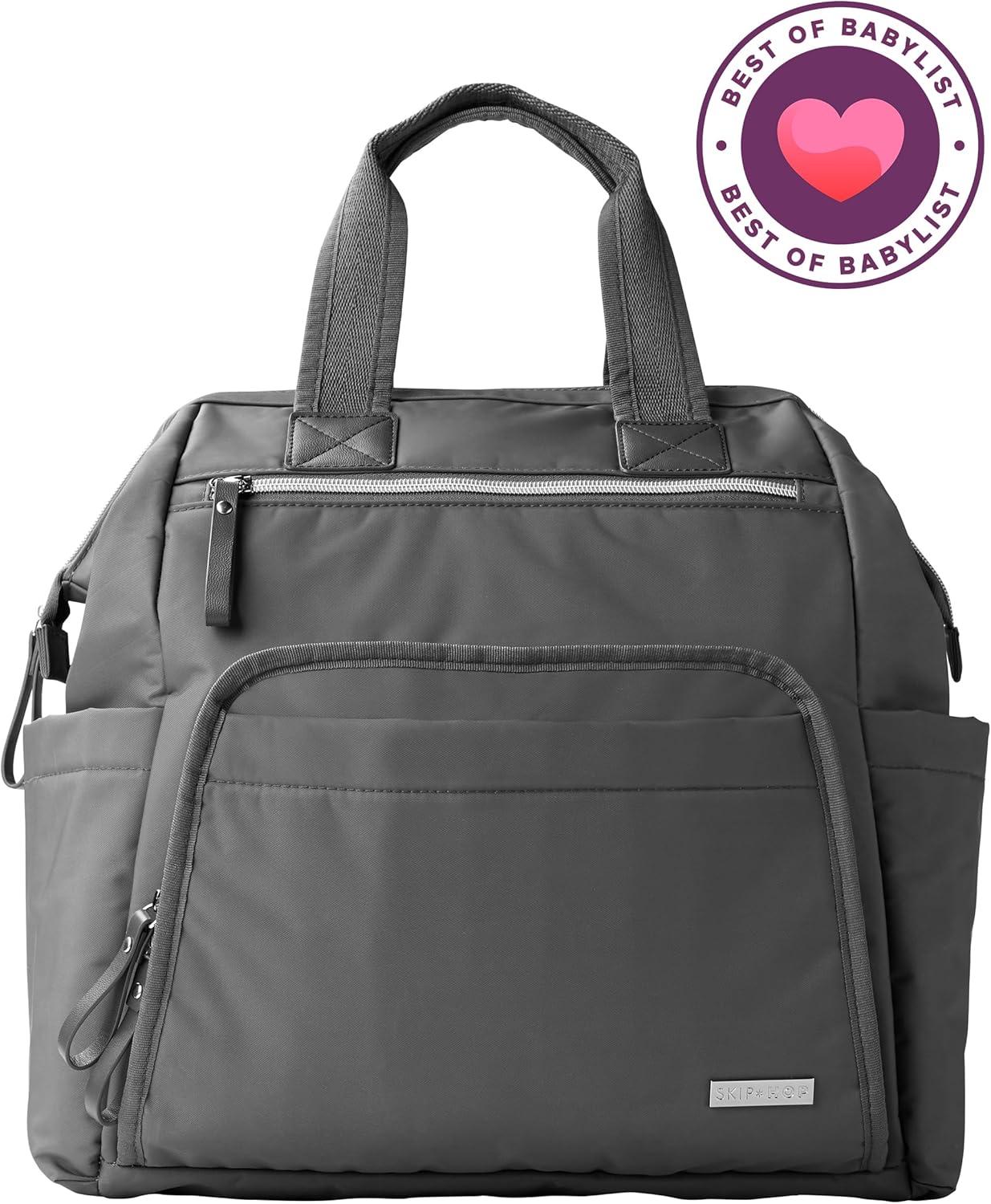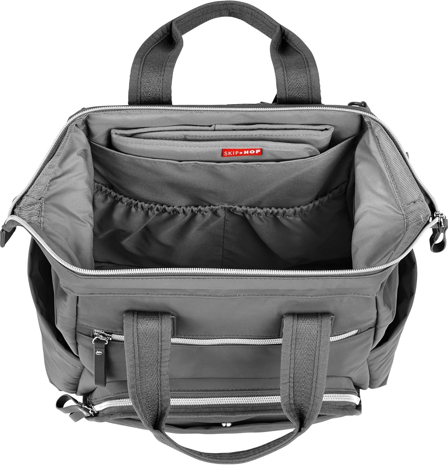 Skip Hop Diaper Bag Backpack: Mainframe Large Capacity Wide Open Structure with Changing Pad & Stroller Attachement, Black with Gold Trim(Charcoal)