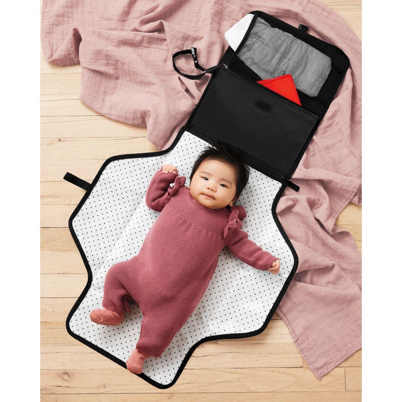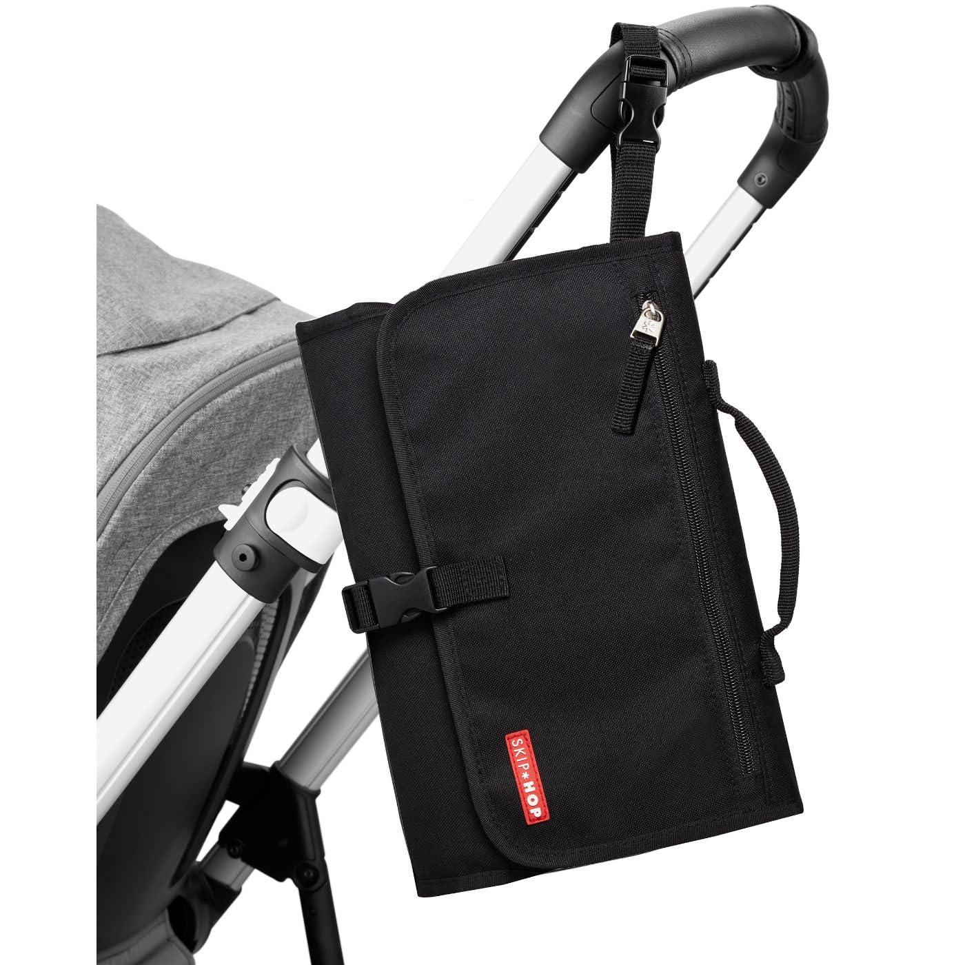 Skip Hop Pronto Signature Portable Changing Mat, Cushioned Diaper Changing Pad with Built-in Pillow, Black Stripe(Black)