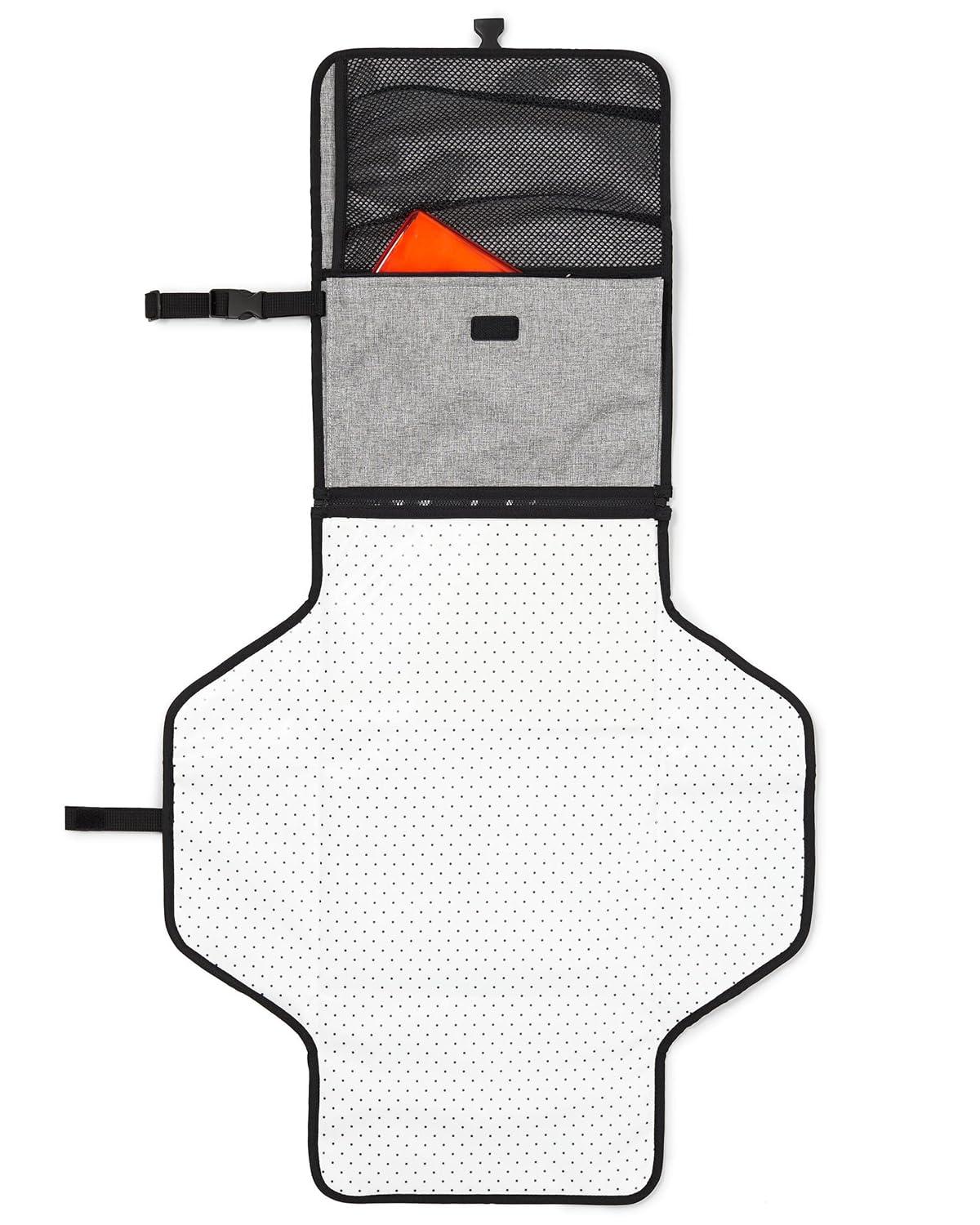 Skip Hop Pronto Signature Portable Changing Mat, Cushioned Diaper Changing Pad with Built-in Pillow, Black Stripe(Grey Melange)