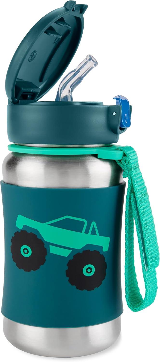 Stay cool on-the-go: Our Skip Hop Stainless Steel Straw Water Bottle keeps drinks refreshingly cool wherever your little one's adventures take them